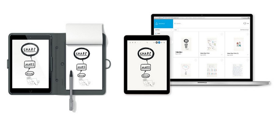 «Переходная» версия блокнота – для тех, кто пока не готов отказаться от бумажной версии, но хочет идти в ногу со временем. Вы пишете от руки (бумага может быть любая, хоть салфетка) ручкой-стилусом на специальной подложке, после чего все ваши записи копируется в формате .pdf или .jpg в облачное хранилище. Делиться написанным можно мгновенно, просто нажав на кнопку синхронизации.