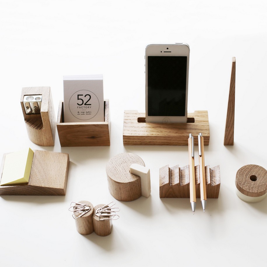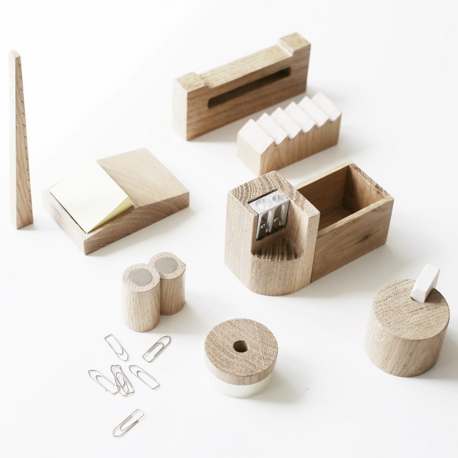 Комплект состоит из 10 деревянных предметов, каждый из которых повторяет очертания знаковых строений русских авангардистов. Так, Дом Мельникова обратился в держатель для скрепок, здание Московского райсовета стало ластиком, Дворец культуры работников связи распался на точилку и держатель смартфона, а труба трикотажной фабрики «Красное знамя» превратилась в линейку. Набор петербургской дизайн-студии был отобран для участия в конкурсе SaloneSatellite World Wide Moscom 2015 и занял 4 место.