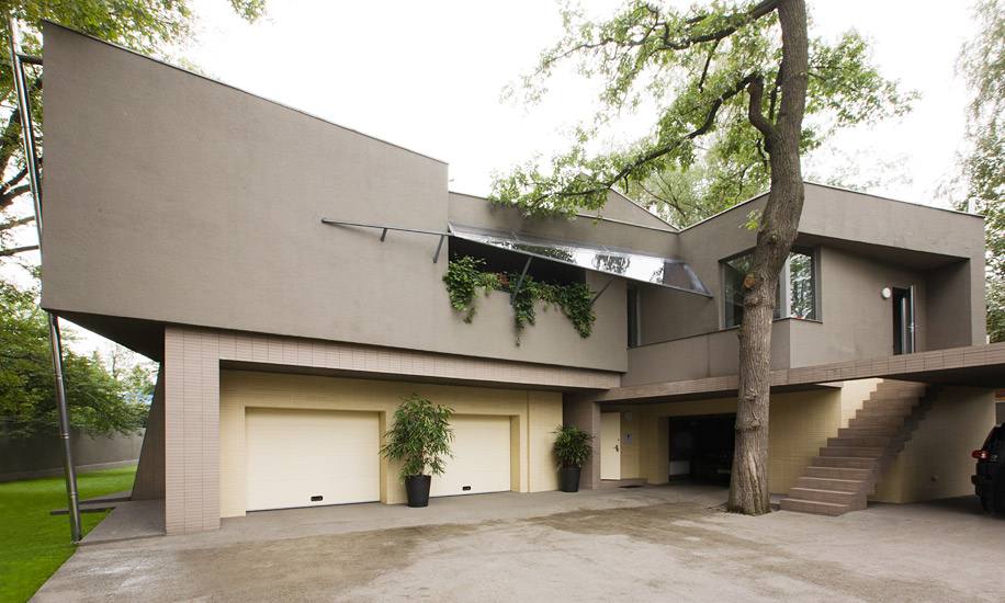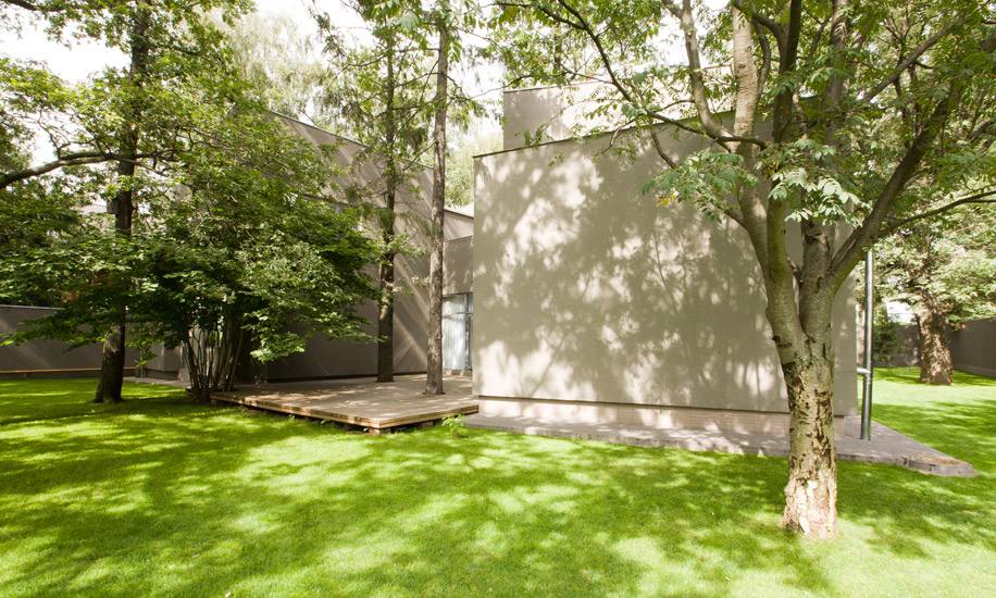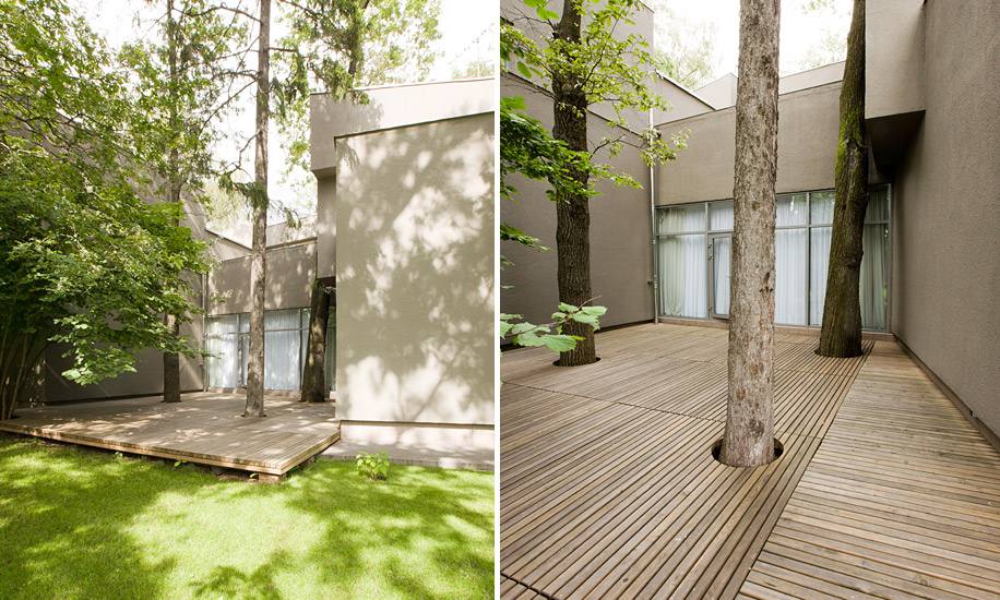 Za bor делает современные проекты со сложной архитектурой. Броский стиль бюро понравился заказчику, и он дал архитекторам полную свободу творчества. Было только одно условие: ни одно дерево на участке площадью 1 800 кв. м не должно пострадать. Это требование усложнило работу, но его удалось выполнить.