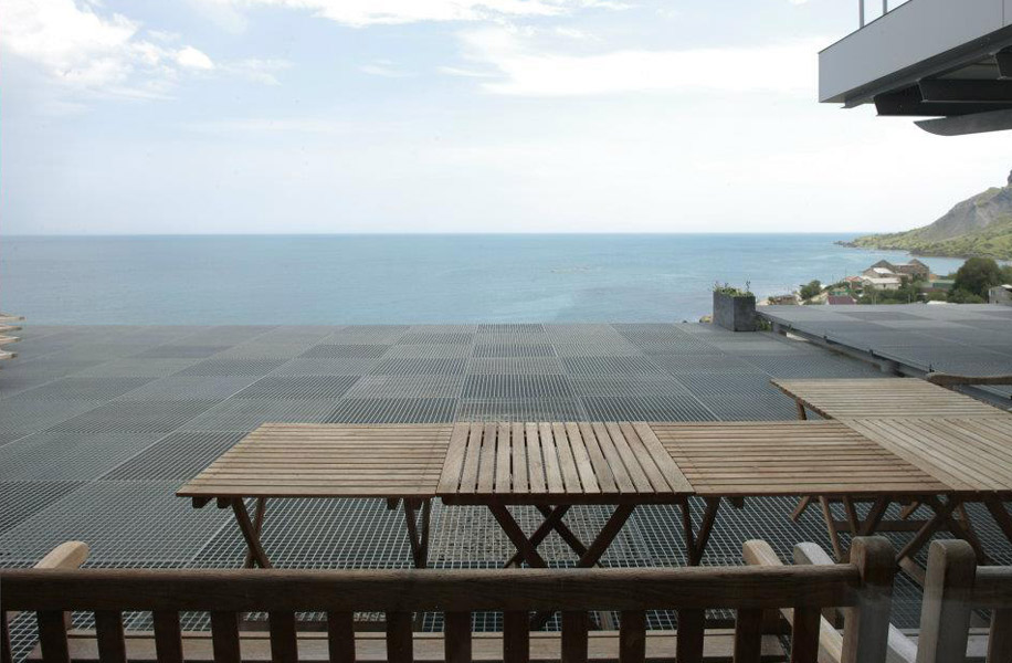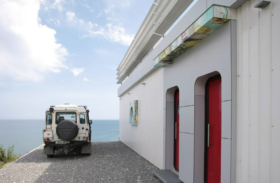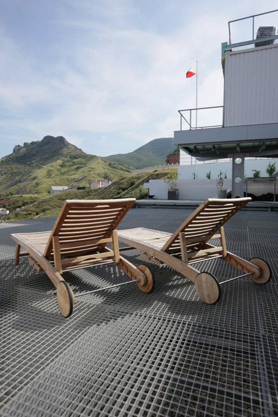 Борис Воскобойников, архитектор, соавтор проекта: «Здание стоит будто бы спиной к поселку. При том что мы не так далеко от центра, здесь совсем не слышно типичного для южных курортов гула, а только шум моря. Все, как мы и хотели».