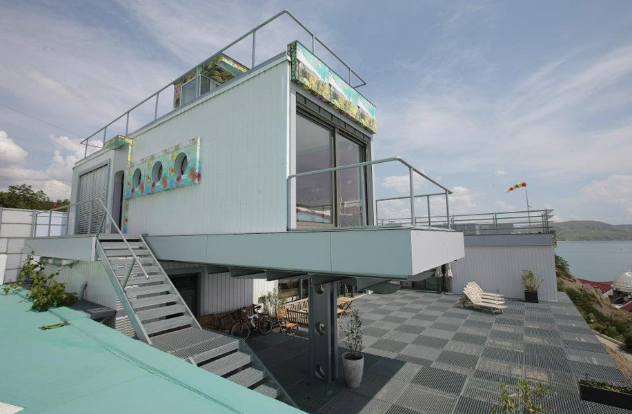 Дом-«контейнер» с палубой и окнами-иллюминаторами в Коктебеле