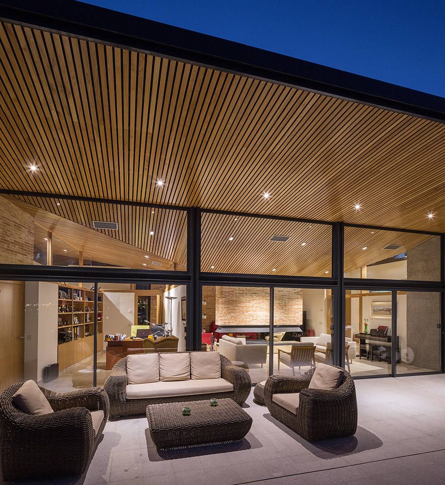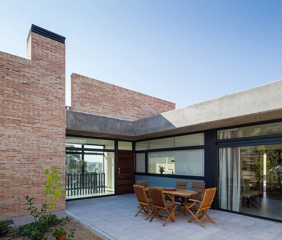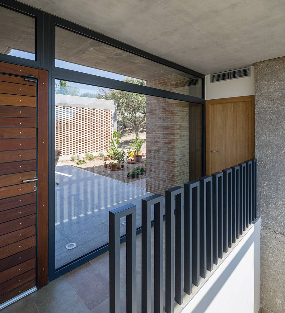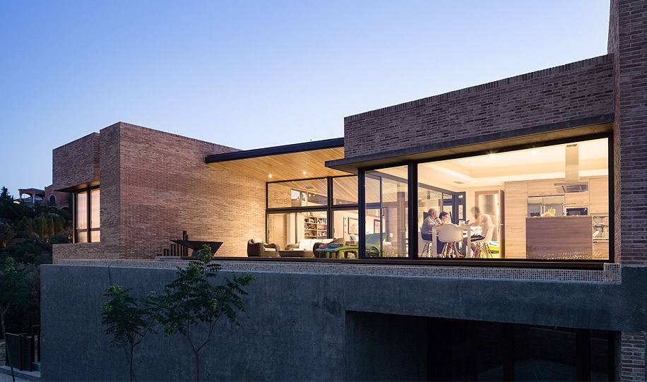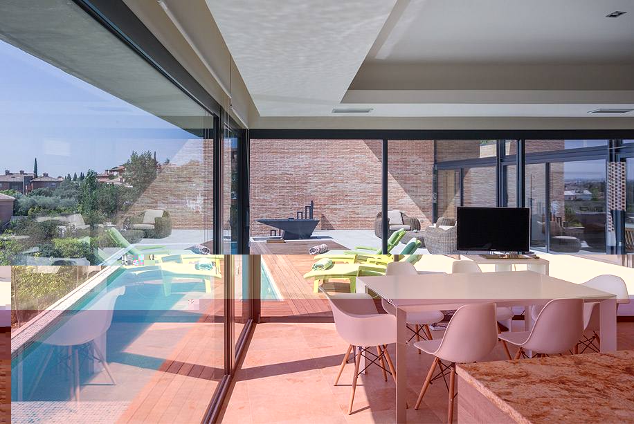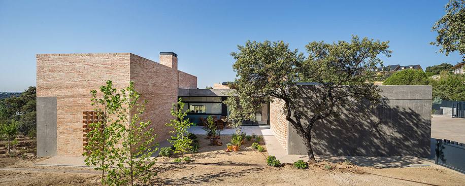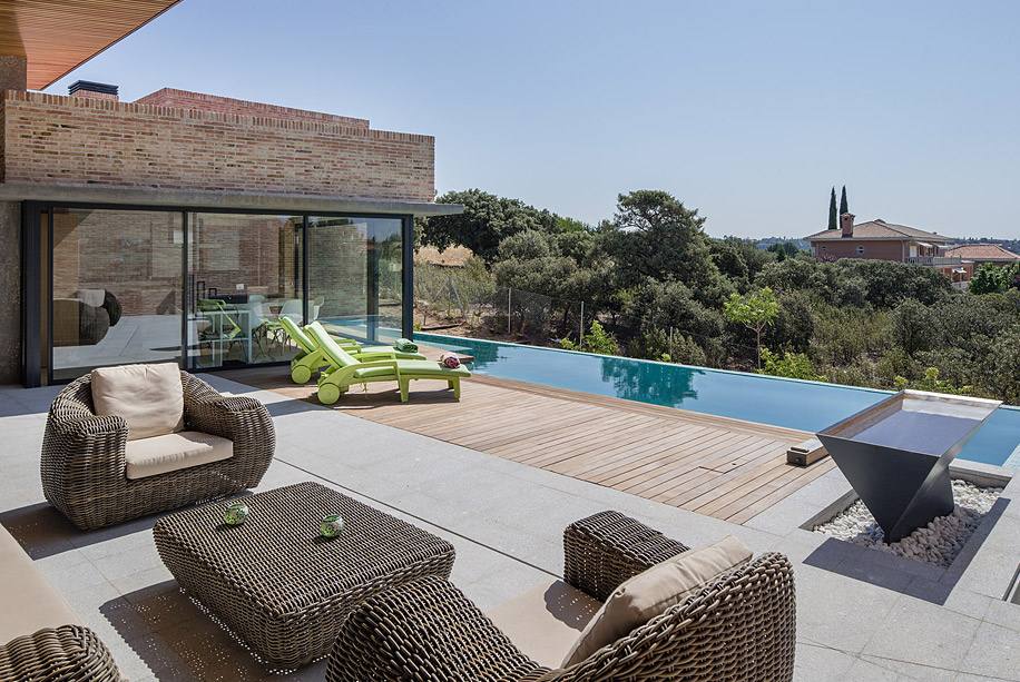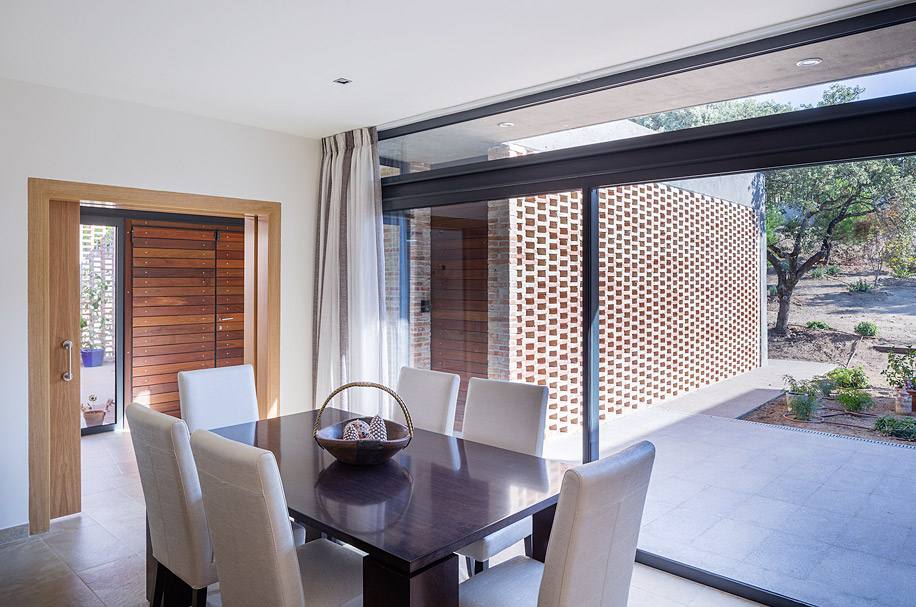 От студии Mariano Molina Iniesta требовалось возвести дом на отлогом участке с отличным видом. Учитывая характер участка и желание охватить как можно больше окружающего открытого пространства, архитекторы спроектировали дом вокруг двух площадок: первая — солнечное патио с бассейном, открытое на восток и юг, вторая — тенистое патио на севере, с более интимной, неформальной атмосферой. Обе площадки соединяет кухня. Бассейн, преобразованный в водоем, расширили вправо до самого края, чтобы оживить вид воды игрой солнечного света.
