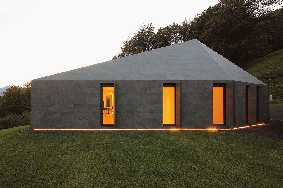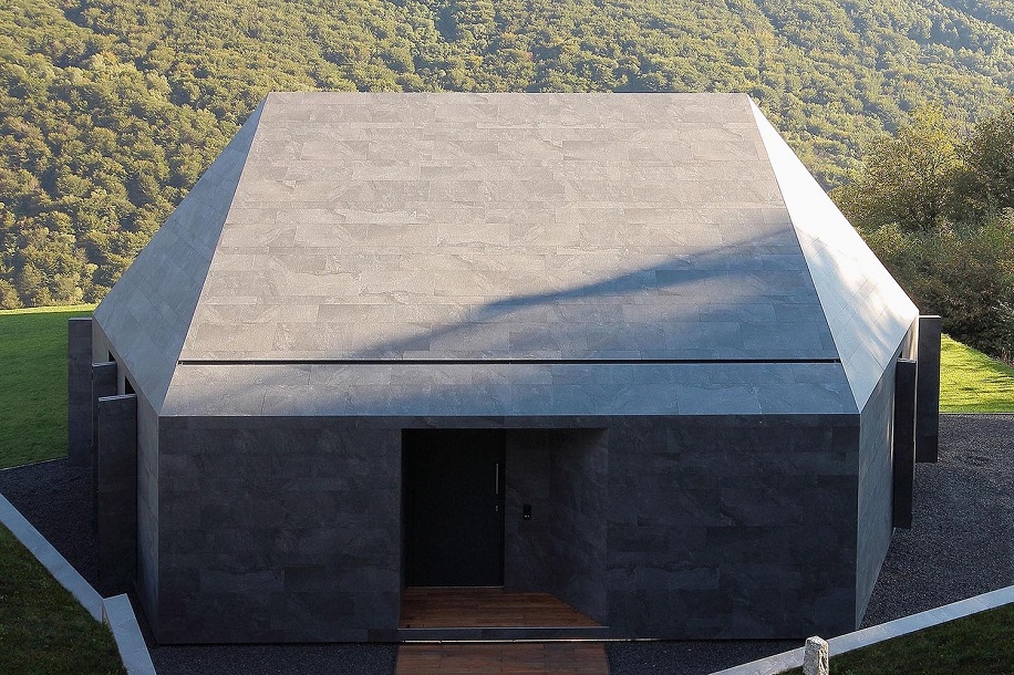 Серый монолит из керамогранитных плит в зеленом альпийском пейзаже. Архитектор Якопо Маскерони из бюро JMA рассказывает, как придумал и реализовал этот проект.