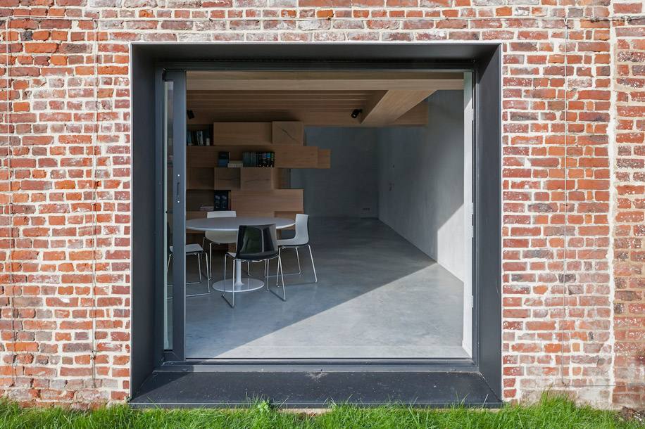 Архитекторы студии Farris Architects оставили практически без изменений потертый временем кирпичный фасад здания. Лишь добавили пару окон, чтобы помещение наполнилось естественным светом, и поставили большую стеклянную раздвижную дверь.
