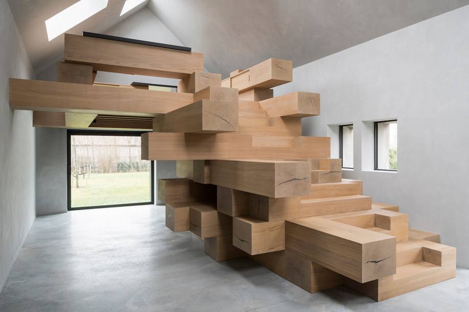 К тому же балки уложены таким образом, чтобы создать лестницу, по которой легко перемещаться с уровня на уровень. При этом вся конструкция легко разбирается.