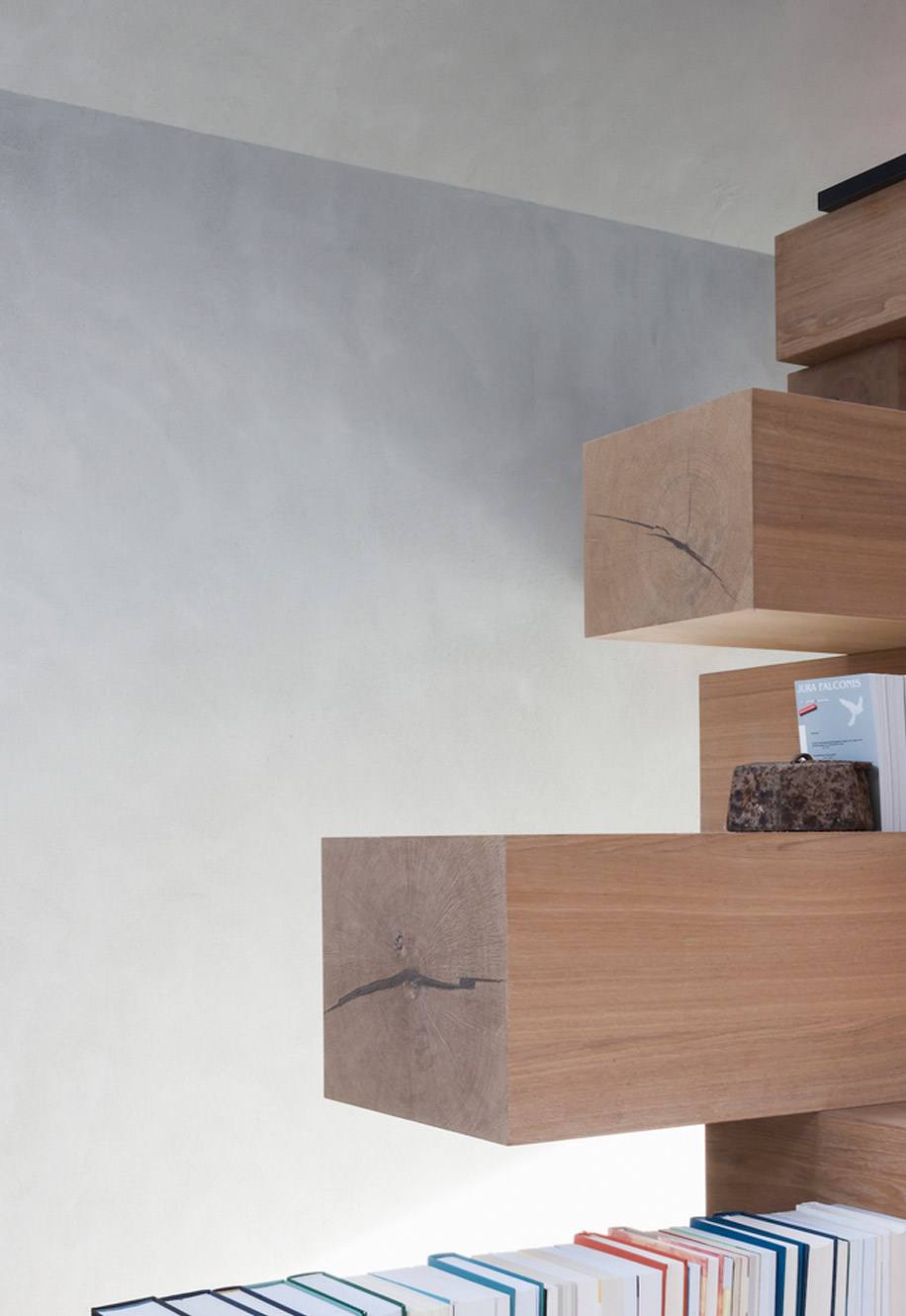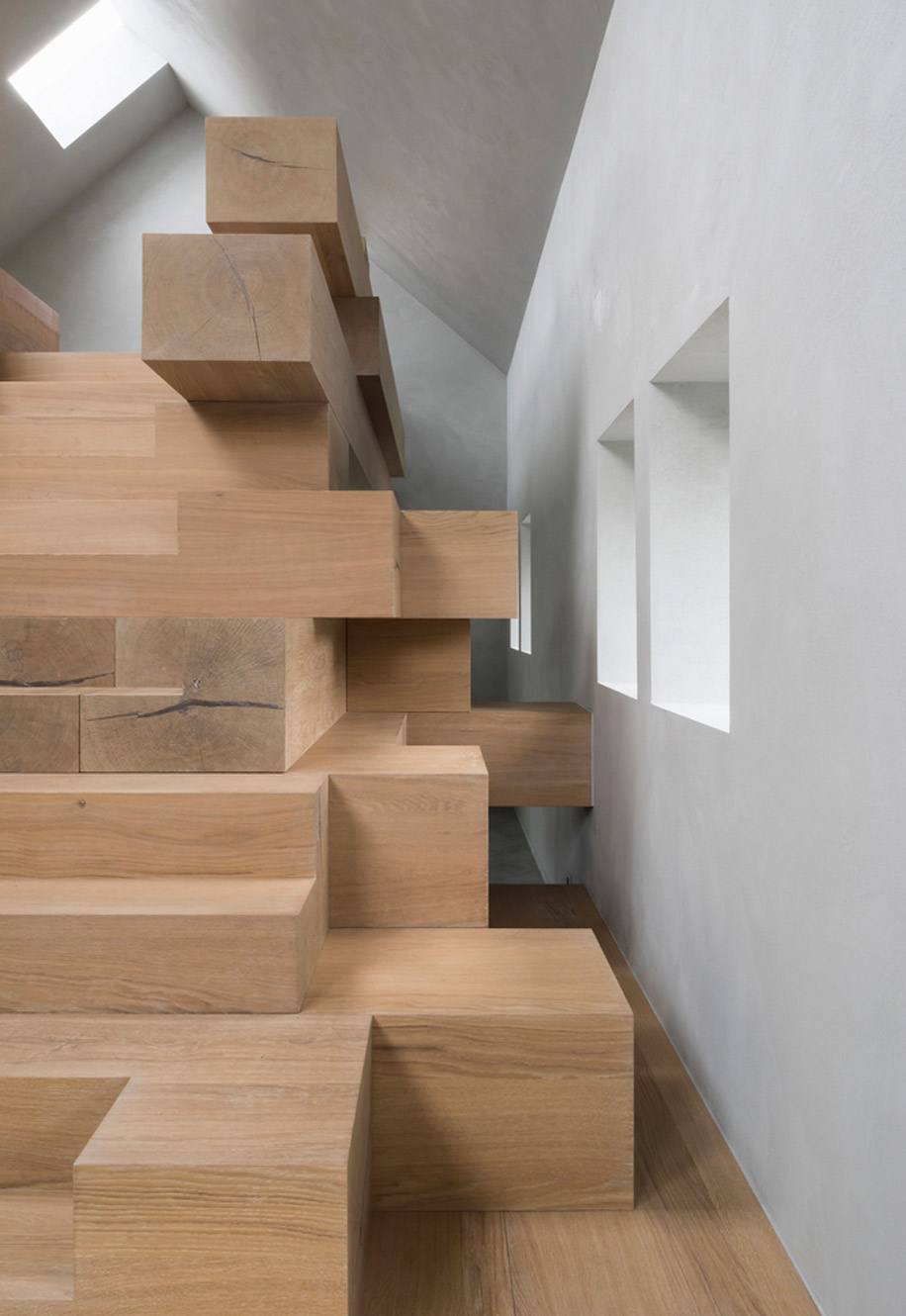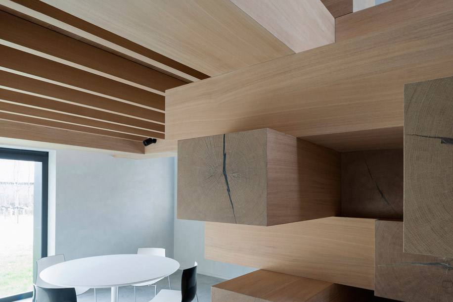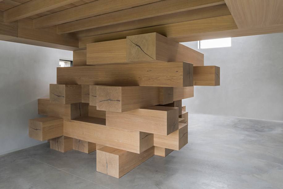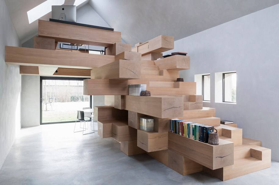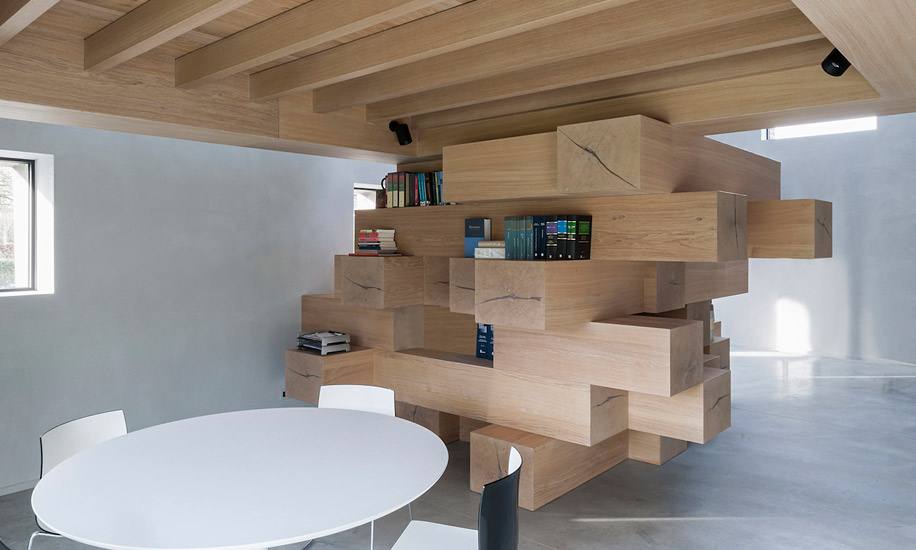 Кроме того, уложенные, казалось бы, в хаотичном порядке бруски превращаются в полки для книг и формируют укромные уголки для чтения.