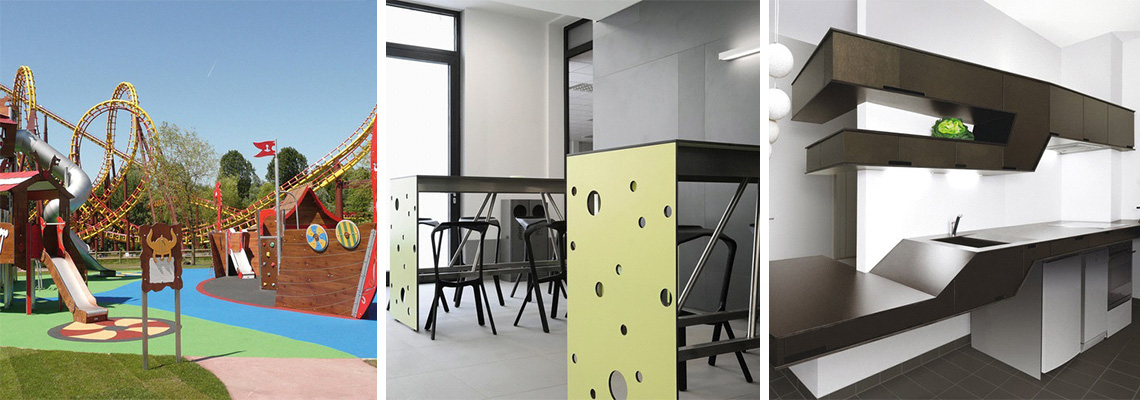 Слоган FunderMax звучит так: «for people who create» – «для творческих людей». Вы уже рассказывали про возможности использования наших панелей. Так вот, помимо традиционного применения материала при отделке экстерьера и интерьера, FunderMax встречается и в более нестандартных, порой неожиданных решениях – к примеру, при обустройстве детских игровых площадок, беседок, а также в производстве мебели для дома и офиса.