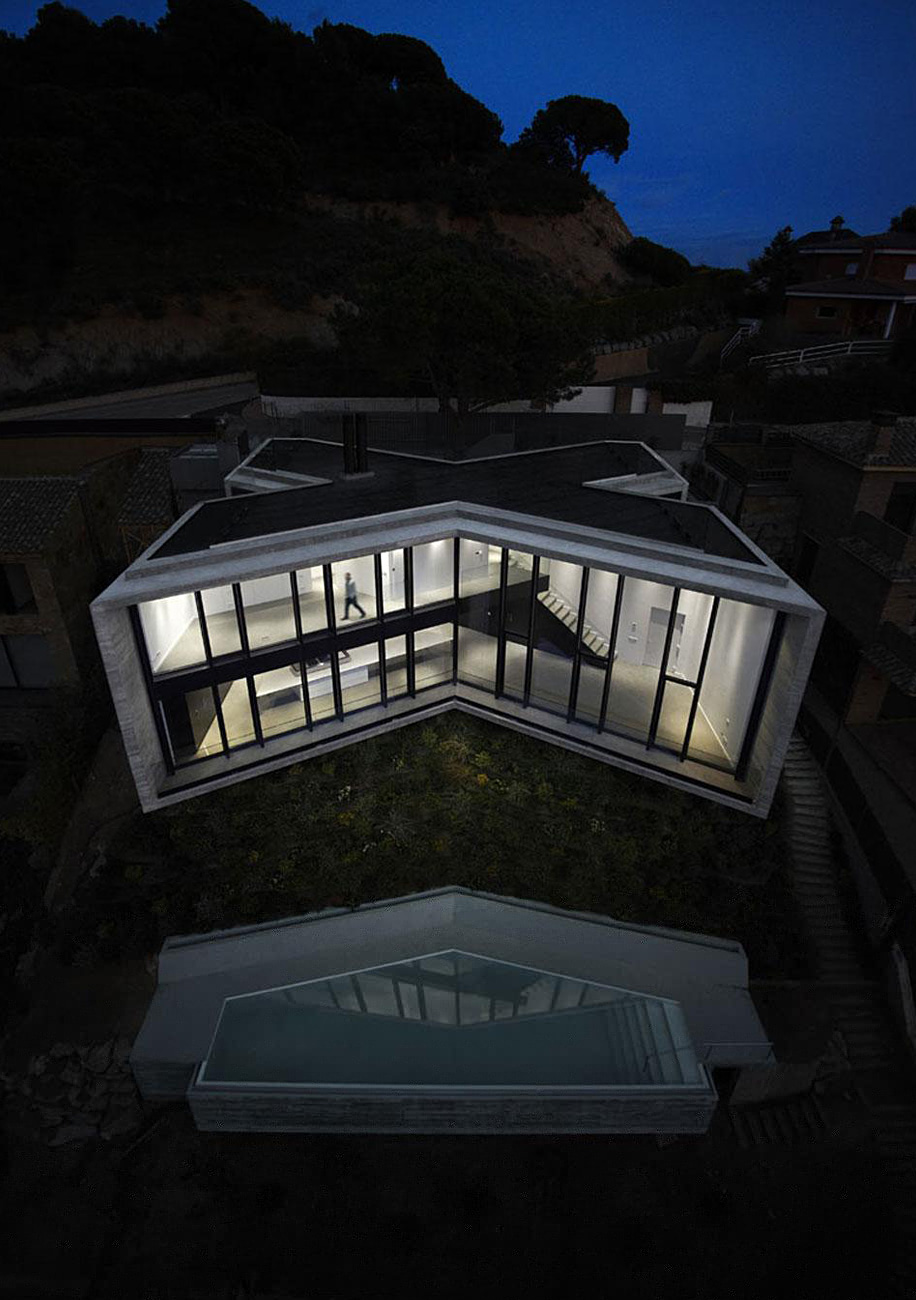 House X стоит на вершине холма в предместьях Барселоны. Сложность представляло и тесное соседство с другими частными домами, мешавшее уединению, и вековая сосна, растущая на участке. Другой дилеммой стал выбор между видом на море и на лес по ту сторону холма. Ответ оказался удивительно простым: форма буквой «Х» удовлетворила все требования к проекту. Как говорят архитекторы, этот вариант не единственный, но наиболее утилитарный.