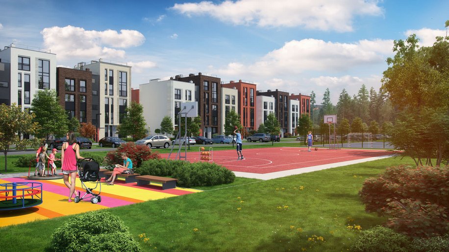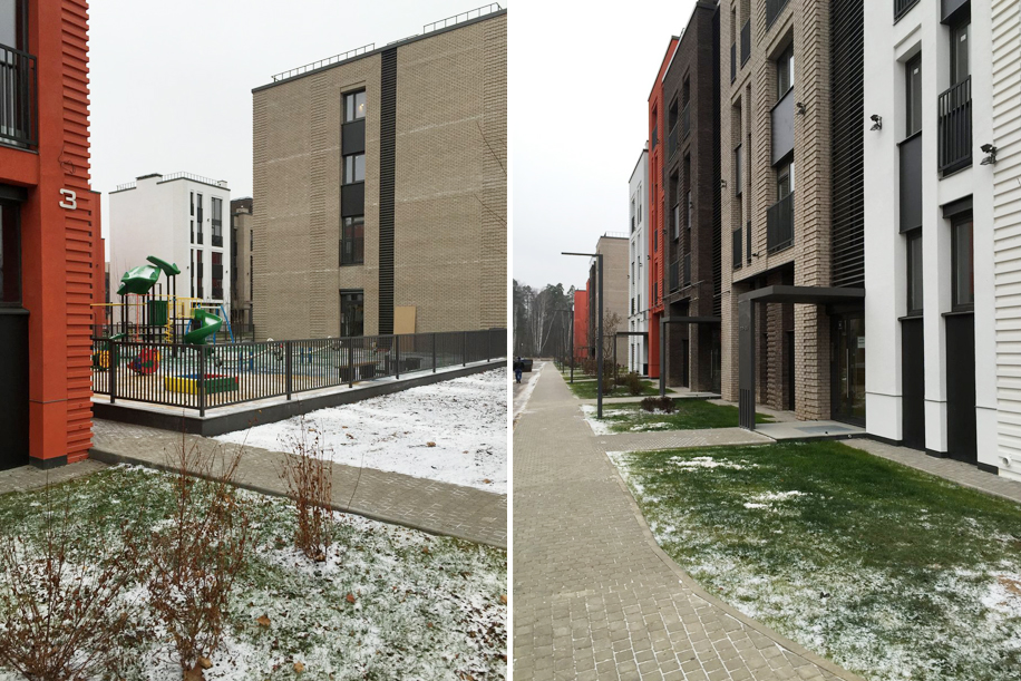 Озеленением и благоустройством, которым отводится значительная роль в создании загородного уюта, занималась компания Greenhance, специалисты в области создания частных садов. Ими были проработаны такие детали, как вид на зеленые оазисы из любой квартиры и индивидуальный дизайн зон отдыха. Это комбинация газонов, лиственных и хвойных деревьев, живых изгородей и клумб.