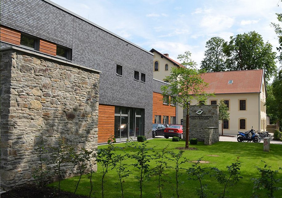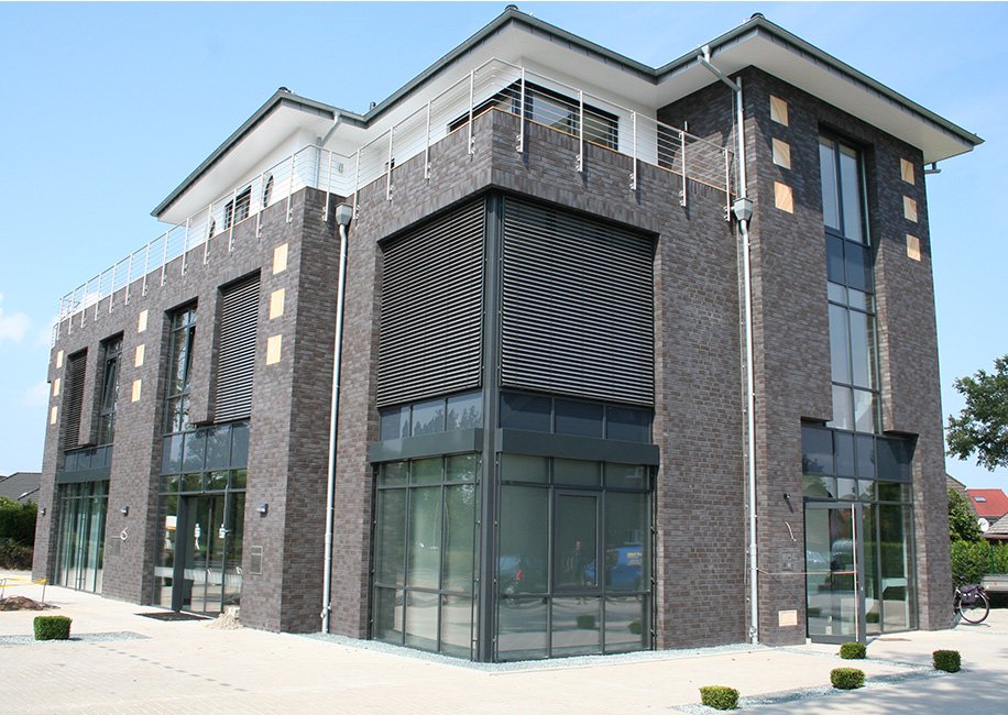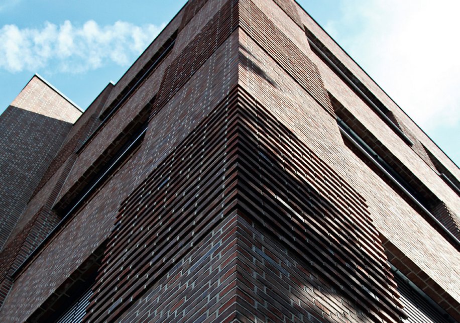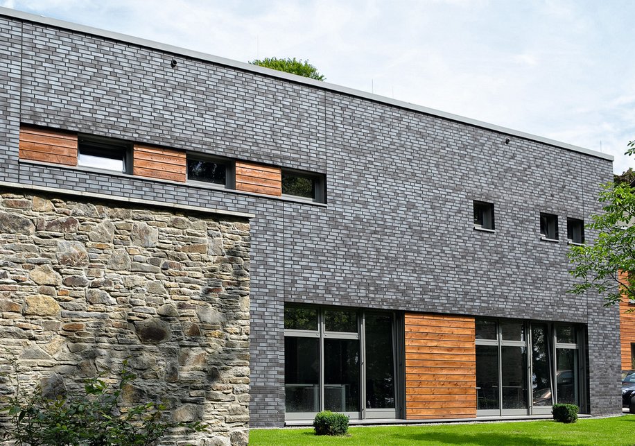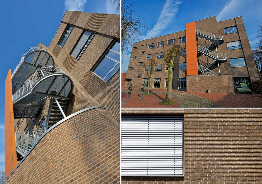 Кирпич и клинкер Olfry демонстрирует отличную сочетаемость с другими материалами. В лабораториях университета Оснабрюк гармонично взаимодействуют клинкер Glasgow Glatt и деревянные элементы плюс обилие стекла. Другой свежий взгляд на возможности кирпича – здание LzO в Гарреле, в фасад которого помещены эффектные стальные пластины.
