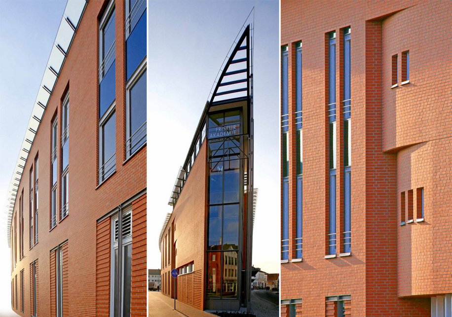 Проект школы включает в себя помещения для занятий и студенческое общежитие. Архитектура здания примечательна сочетанием строгих прямых линий и закругленных элементов, сплошной кирпичной кладки и множества окон разных форм и размеров. Selugga & Selugga сыграли на контрасте не только в рамках самой школы, но и вообще Ольденбурга. Здание выглядит особенно привлекательным на фоне привычных для города оштукатуренных домов.