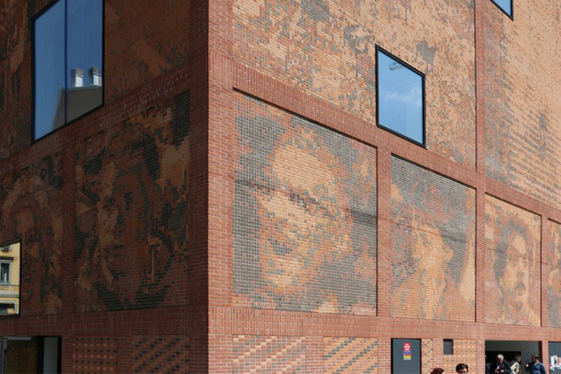 На фасаде «Музея Памяти» из кирпича выложены «пиксельные» изображения граждан и знаковых событий из истории Милана. Так по задумке архитекторного бюро Baukuh «лицо» здания отражает его содержание.