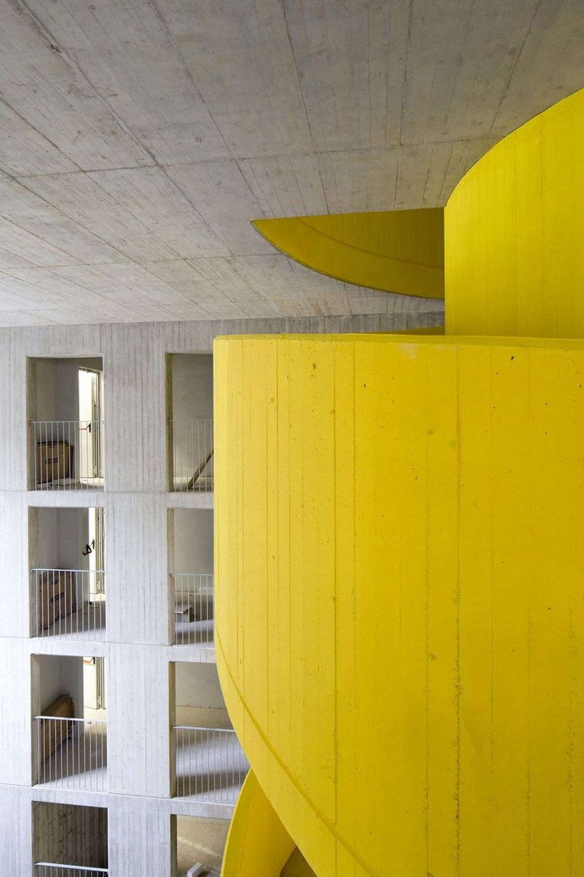 Желтая лестница — не только главный распределительный элемент здания. Она несет в себе некую фигуральную символическую нагрузку — учитывая, что ценность архива не позволяет посетителям получить прямой доступ к документам, связь между гражданами и историей осуществляется через «вращательное» движение лестницы.