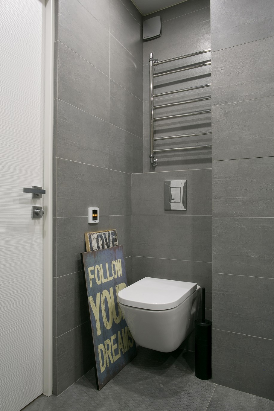 Хозяин этой квартиры-студии – молодой холостяк. Увлекается спортом, любит готовить и принимать гостей. Занимается установкой систем «Умный дом» и потому во всём ценит функциональность. Поэтому хотел простой, удобный интерьер. Минималистичный, с элементами лофта.