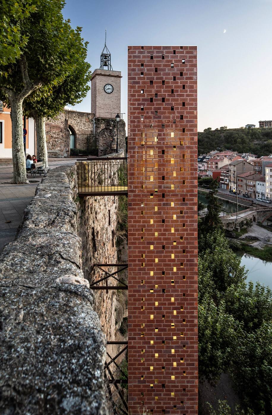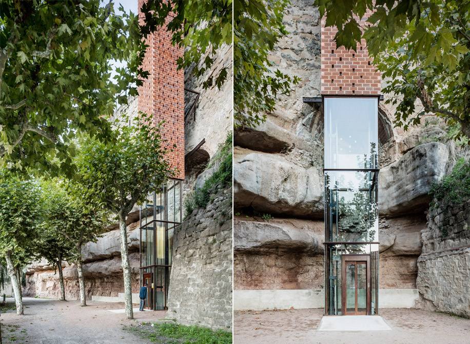 20-метровый кирпичный лифт соединяет средневековую и современную части испанского городка Жиронелья.