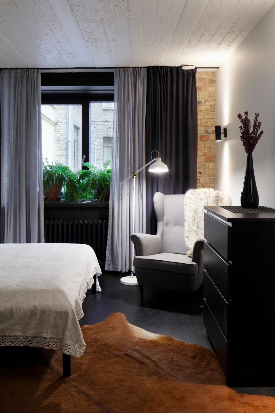 Архитекторы бюро Open AD смягчили индустриальные элементы текстилем, мебелью из натуральных материалов и скандинавскими аксессуарами. Посмотрите, насколько уютным получился уютным, несмотря на брутальность исходного материала.