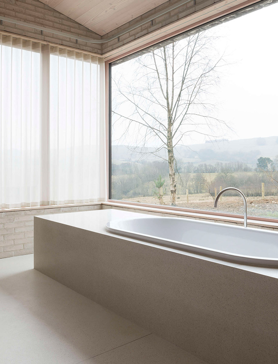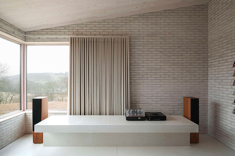 Life House/Tŷ Bywyd стоит на молчаливых уэльских холмах, чья аскетичная природа служит фоном медитации из специальной пещерообразной комнаты (палат созерцания) или из внешней зоны дома. Но проект не держится на одном лишь уединении — жилая зона довольна гибкая и дает возможность и побыть одному, и взаимодействовать с другими людьми.