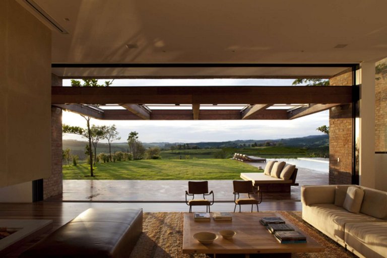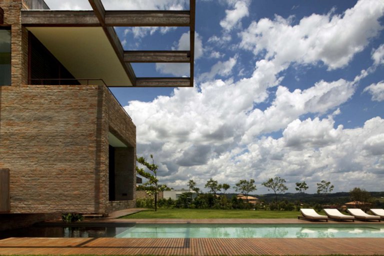 Дом в районе Quinta da Baronesa, что в часе езды от Сан-Пауло, принадлежит молодой паре с двумя детьми, 5 и 8 лет. Для строительства использовались только натуральные материалы — дерево кумару и старый кирпич, который остался с ранее разрушенного здания. Окна дома выходят на поле для гольфа.