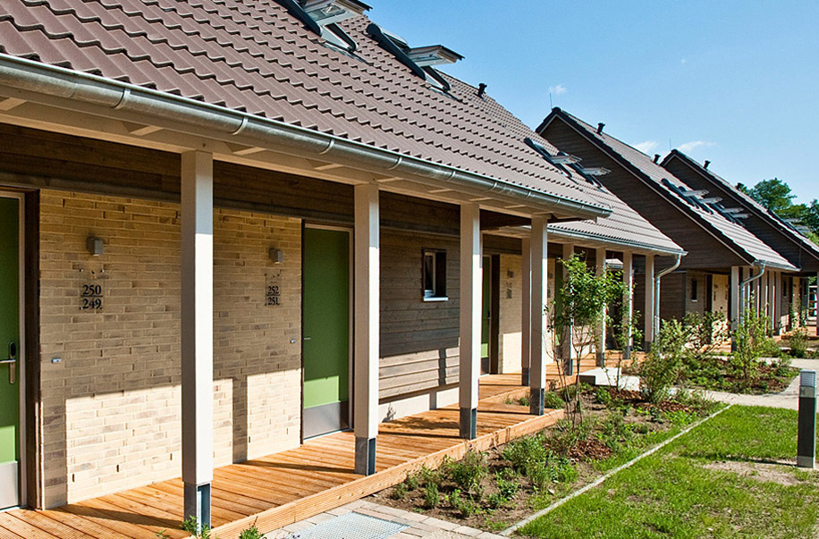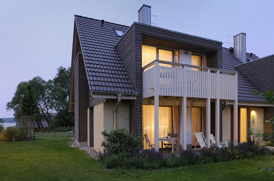 Villa Vita – так называется база отдыха в немецком Ганцлине на берегу озера Плауэр-Зе. Она представляет собой несколько групп вилл, отель, ресторан и сауну с бассейном. Авторы проекта, бюро Wolf Architekten, предложили визуально связать разные архитектурно и по назначению дома чередованием материалов: клинкера, темного и серого дерева и плетения из ивы.
