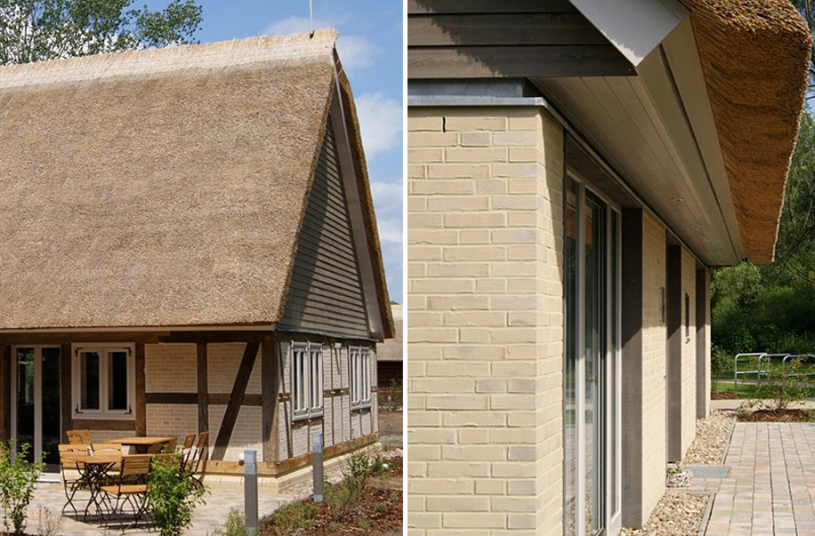 Фасады вилл отделаны клинкером Kopenhagen BA от Hagemaster, удачно сочетающимся с темными деревянными панелями на фронтоне. Такими же панелями выделены окна первого и второго этажа, выступающие из крыши.