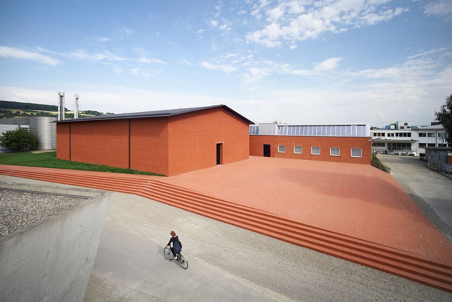 Так называется новое хранилище на кампусе Vitra, одноименного немецкого производителя дизайнерской мебели и аксессуаров. Его форма – любимый Херцогом и де Мероном мотив типичного, как на детском рисунке, дома: двухскатная крыша, четыре стены и единственная прямоугольная дверь. Материал для проекта тоже типичный – красный облицовочный кирпич. Но, как и здание, он только выглядит простым: его разработали специально для проекта, с учетом пожеланий архитекторов.