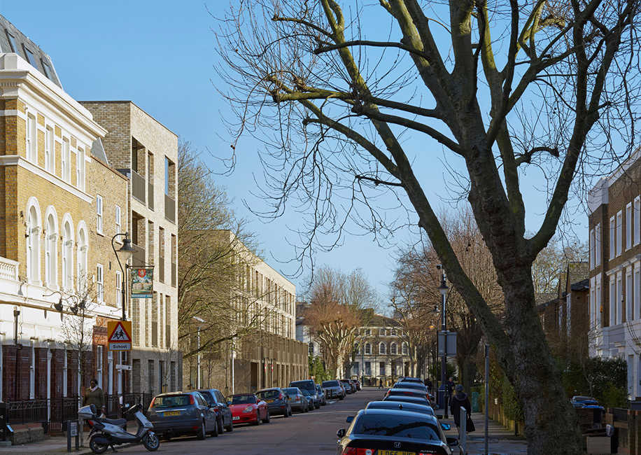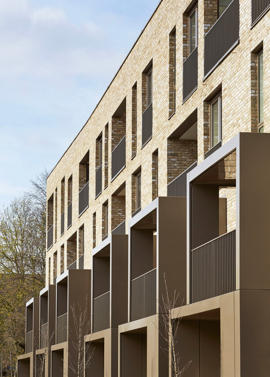 Квартиры и двухэтажные апартаменты на Чичестер-роуд объединили в пределах четырех этажей, воссоздав вид загородных домов 19 века. Бронзовые навесы нужны, чтобы выделить отдельные входы и служить балконами на втором этаже.