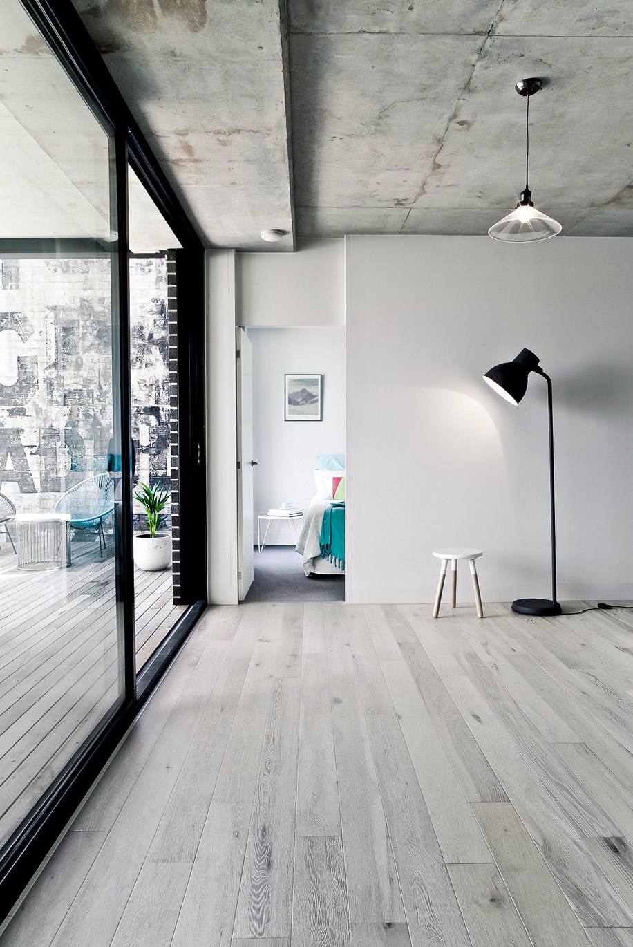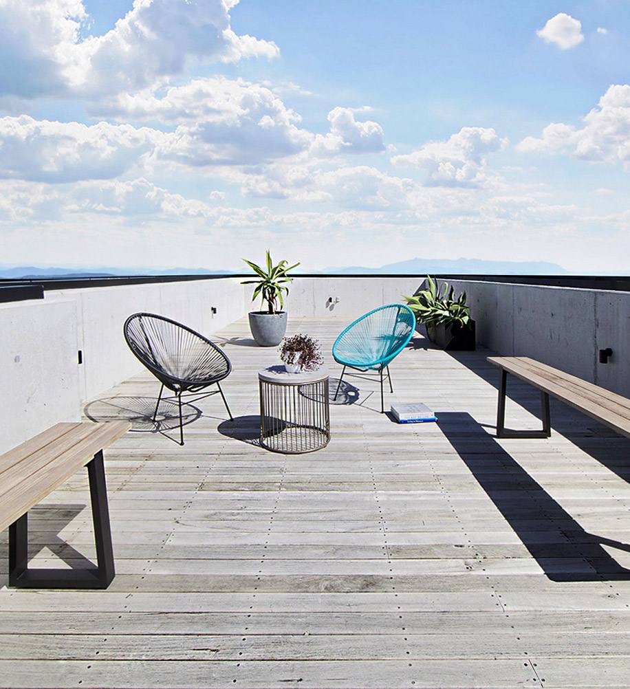 На каждом из трех жилых уровней есть три квартиры с двумя спальнями и частными террасами разных размеров.